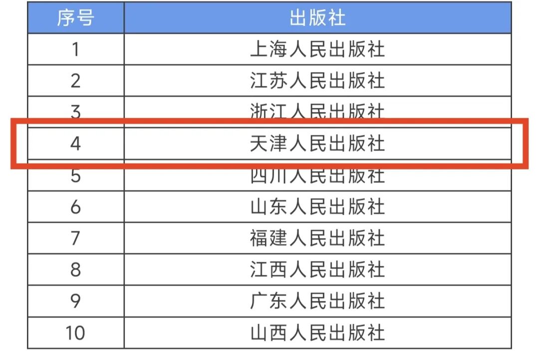 天津人民出版社入选地方人民出版社学术影响力TOP10(2015-2024)